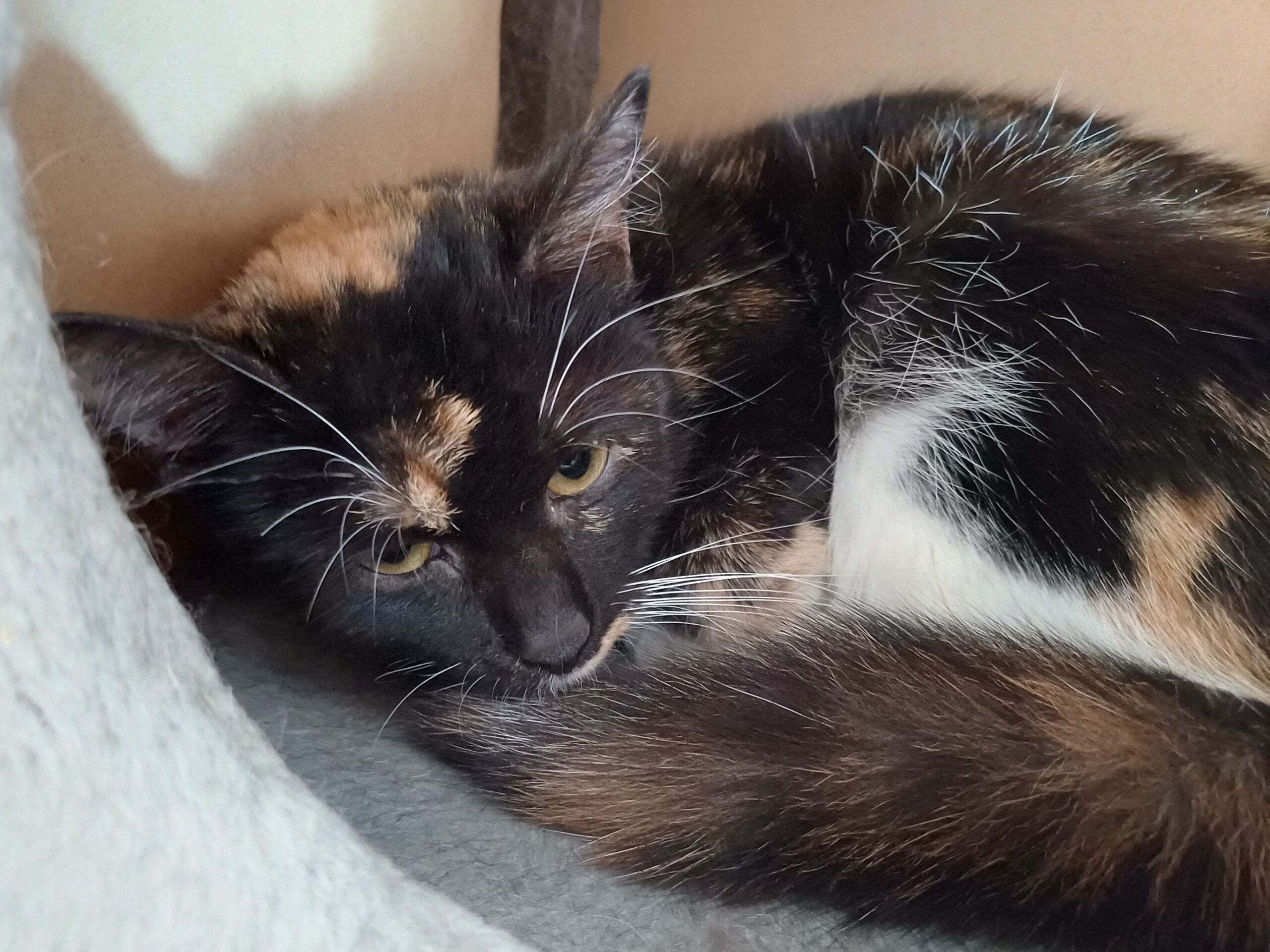 Agnes kom till oss från en kattkoloni, men hon är ändå rätt social. Lite blyg men är samtidigt mysig, lekfull och väldigt nyfiken av sig, hon gillar att utforska i de rummen hon har tillgång till.