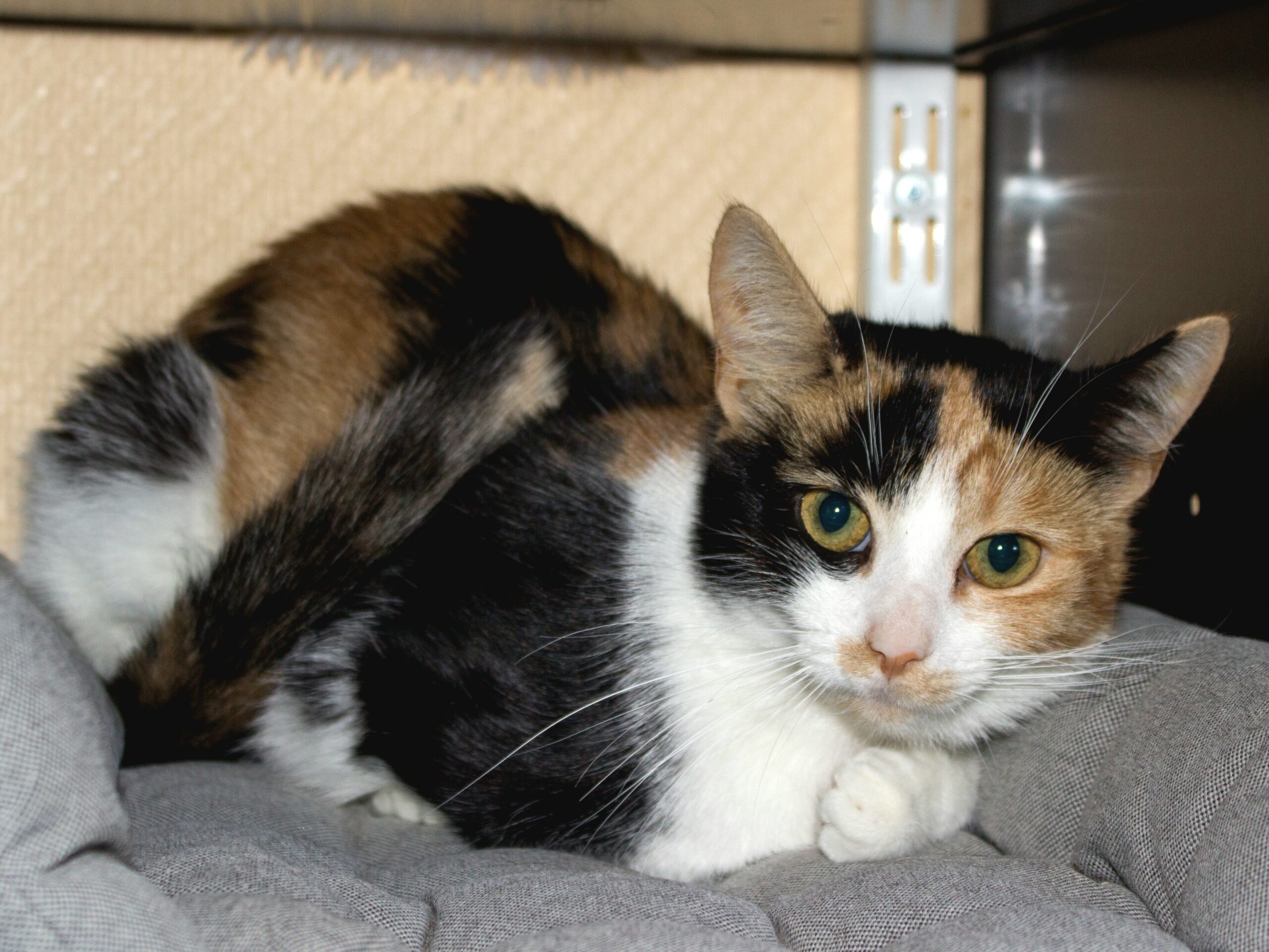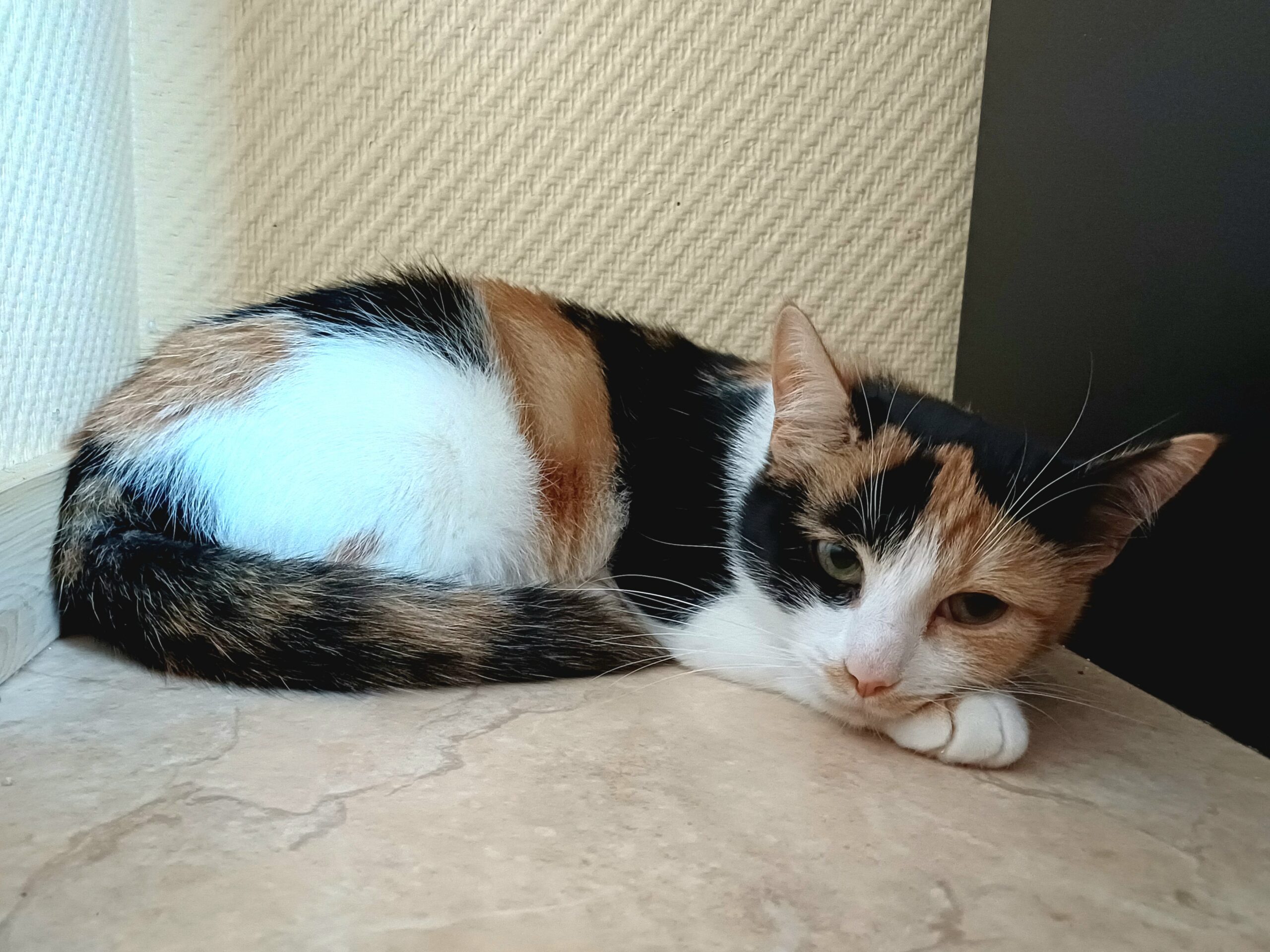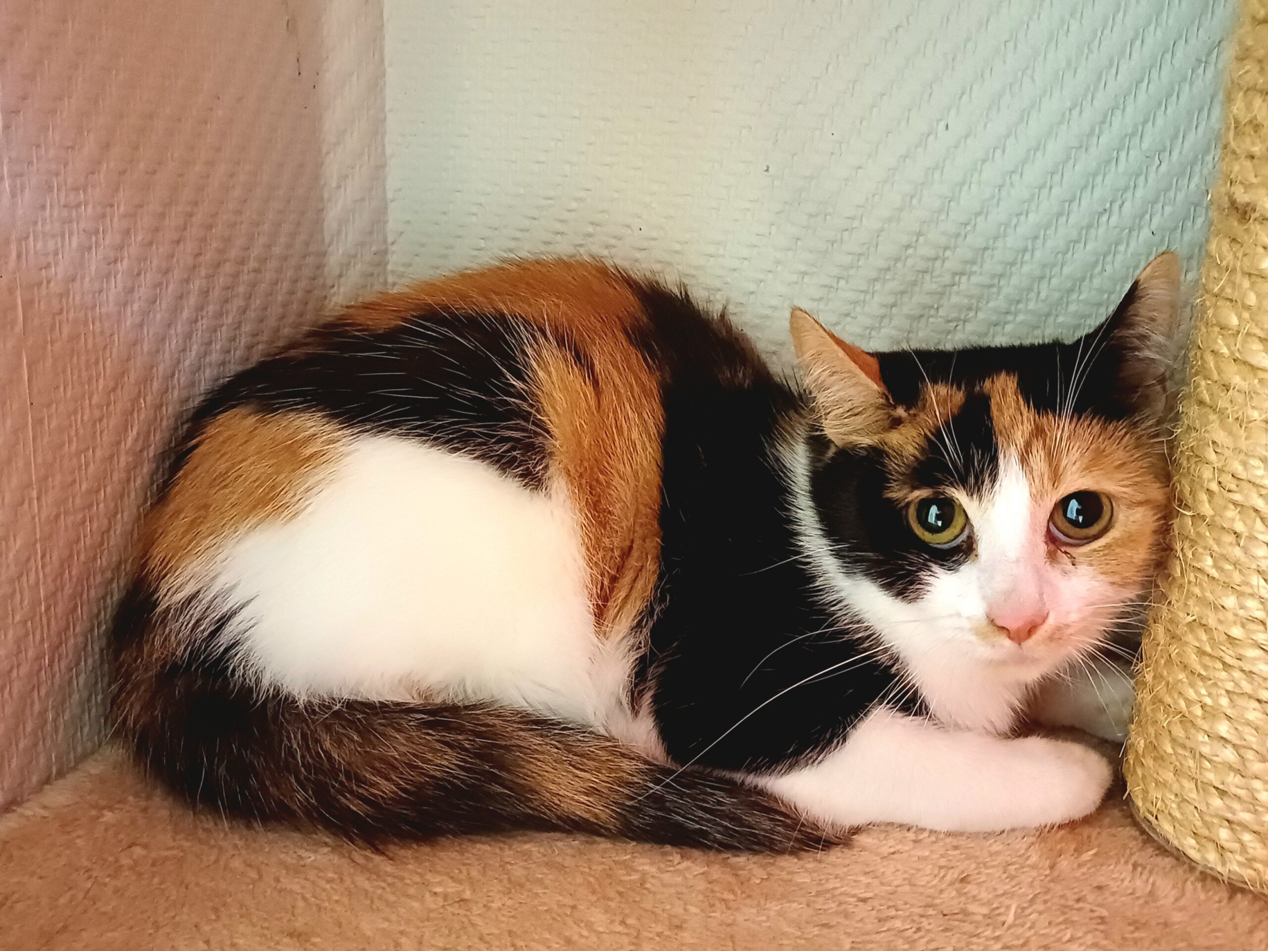 Alba kommer från en kattkoloni och är lite skygg av sig, men hon är lätthanterlig så vi tror att hon kommer bli ett fint sällskap när hon känner sig trygg.