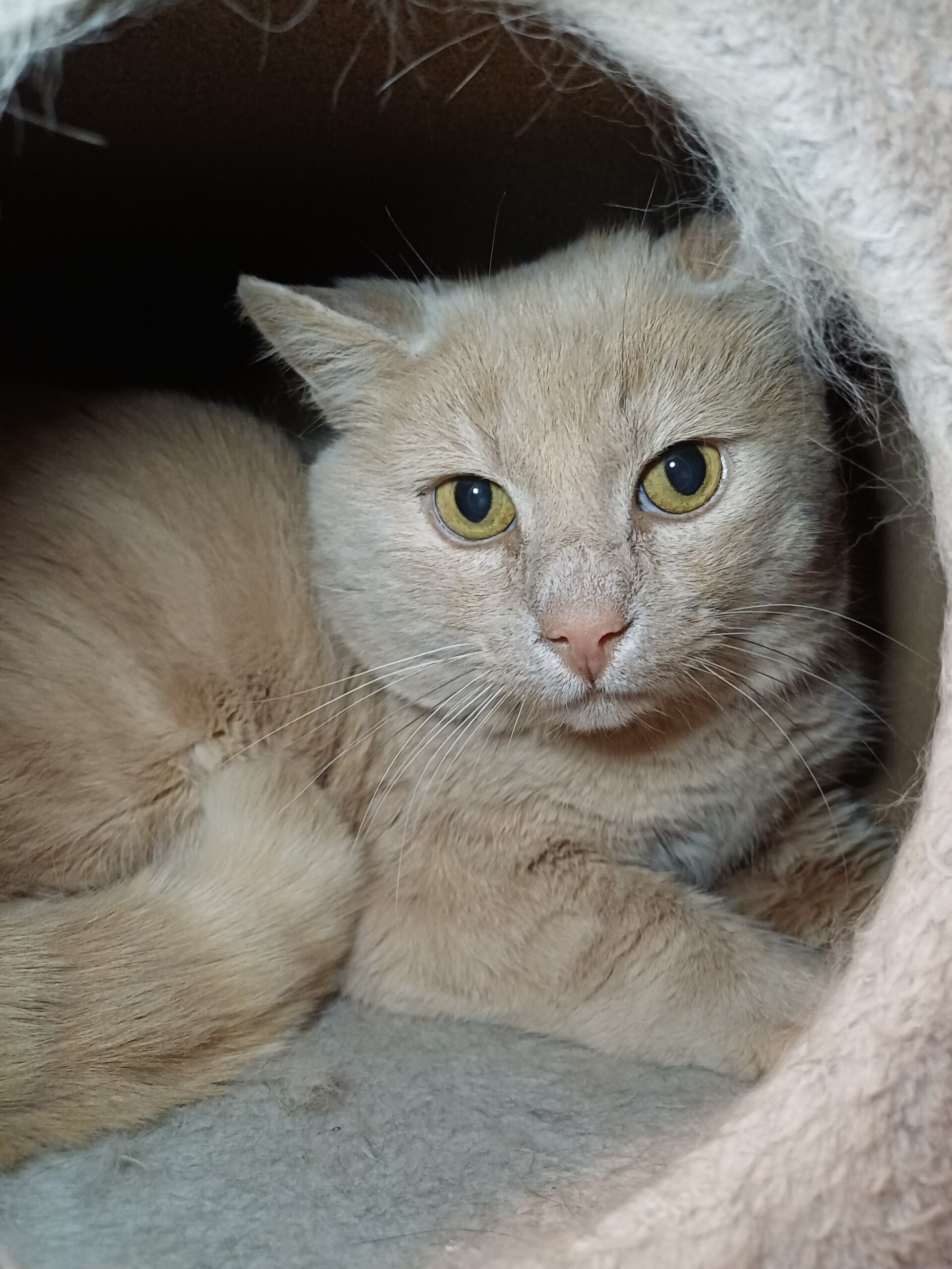 Gio fångades in utomhus och söker nu ett värmande hem. Han är fortfarande skygg då det är läskigt med ett nytt ställe, men man får klappa han lite försiktigt på huvudet ibland, så vi har på känn att han kommer blomma ut när han hamnar i en ännu tryggare miljö.