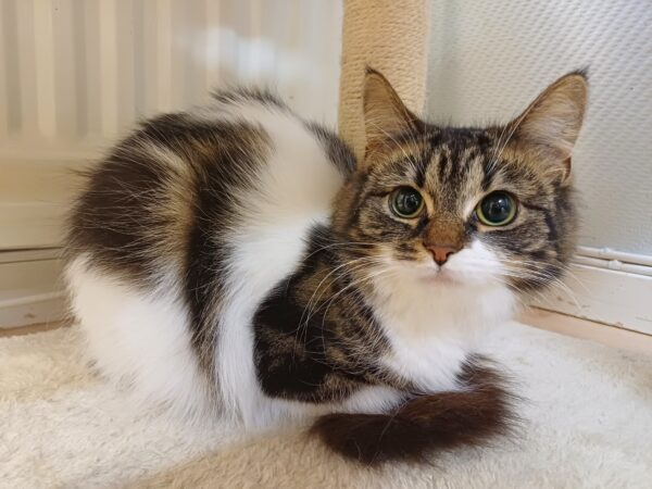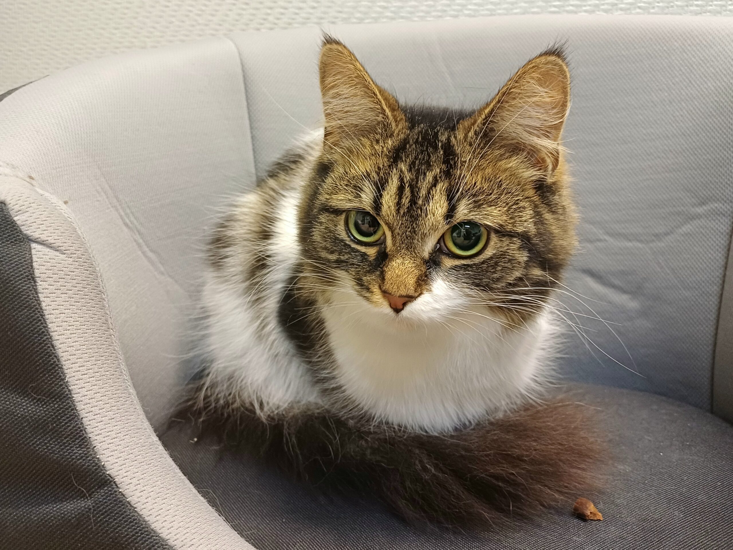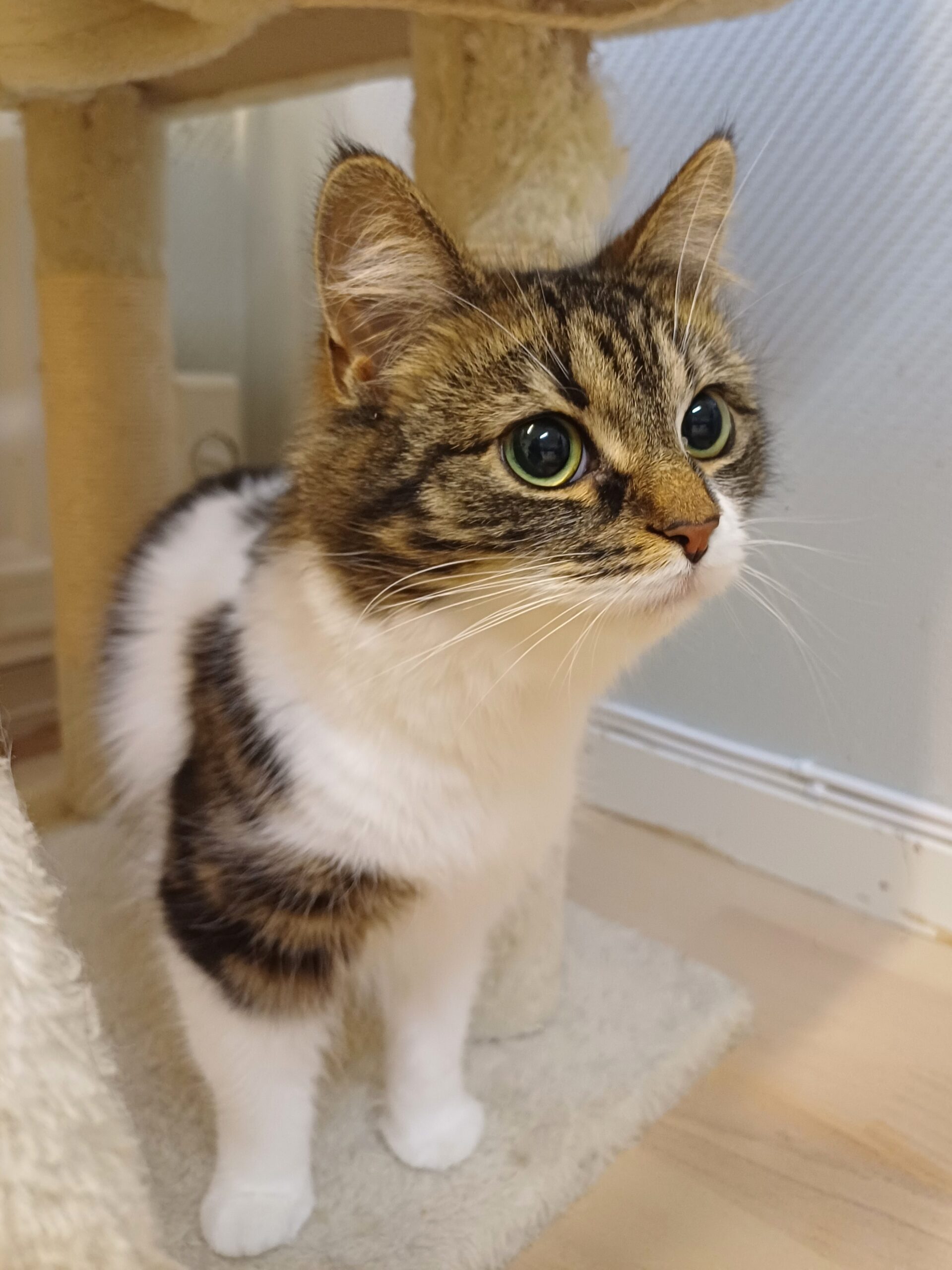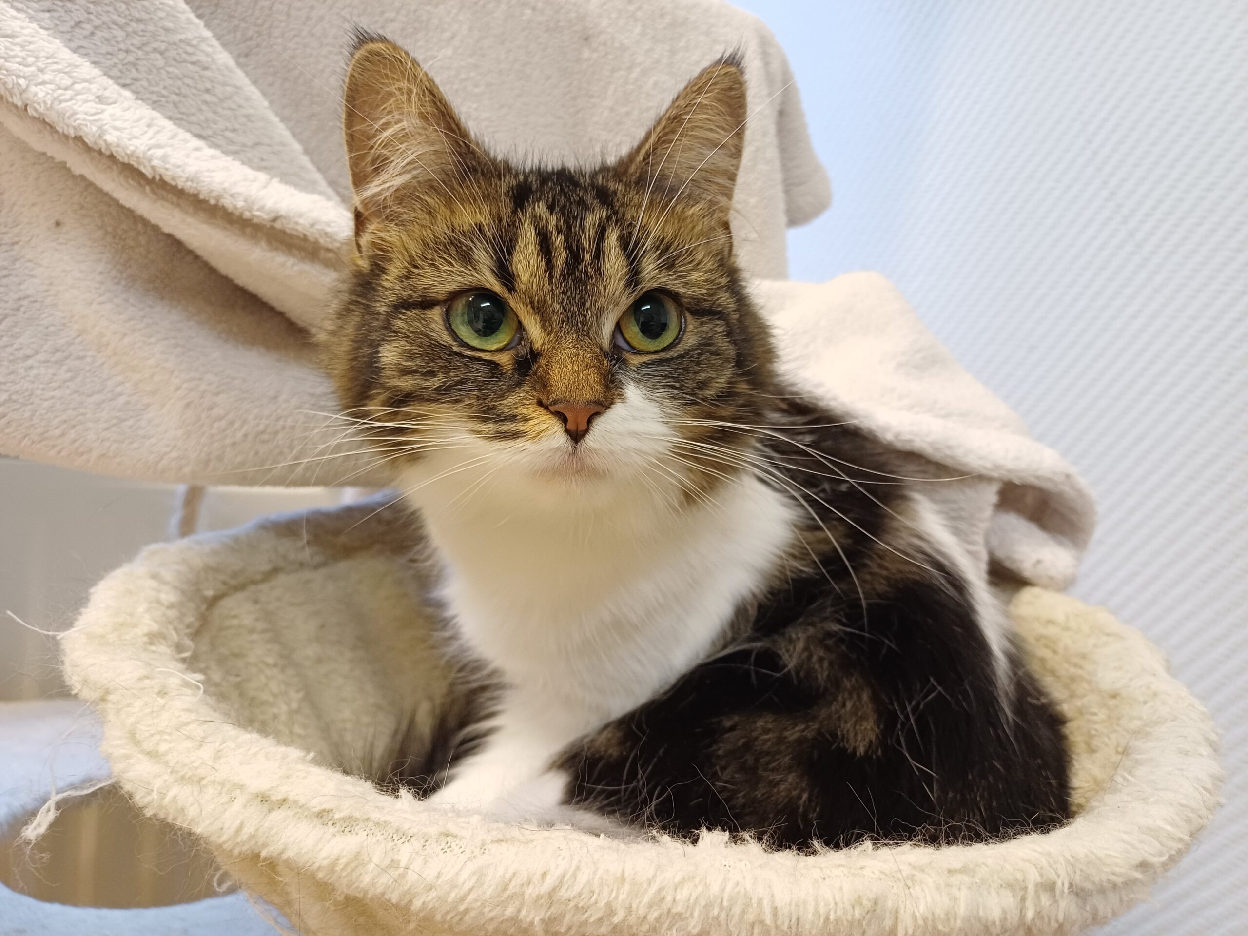 Kissen söker ett nytt kärleksfullt hem då det blev problem med allergi i sitt förra. Hon gillar att få uppmärksamhet och mysa mycket när hon väl börjat känna sig tryggare.