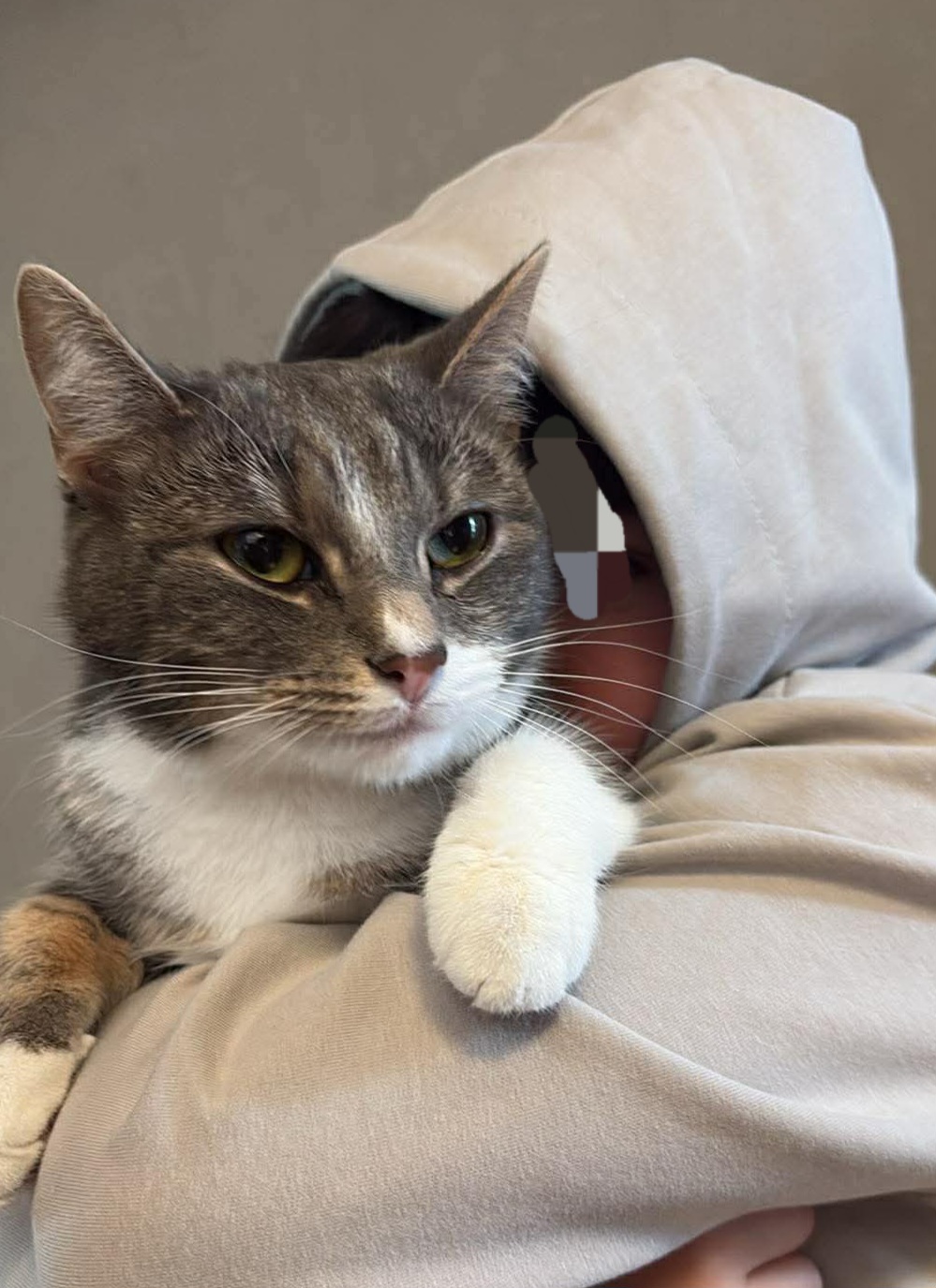 Kitty är en snäll och go liten tjej som har levt sitt liv innekatt. Hon är van vid andra katter så ett hem med en kompis bör inte vara ett problem.