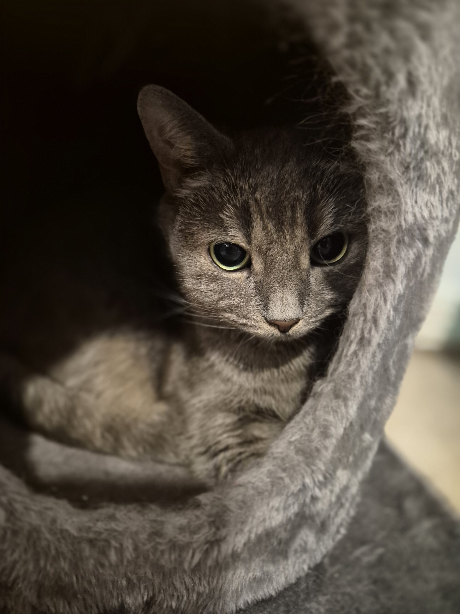 Här har ni två tjejer som står redo för ett nytt hem att blomma ut i. Båda tjejerna är lite avvaktande och behöver ett hem där man har lite tålamod att låta dem bli trygga sakta men säkert. Vi tror att de här damerna helst bor utan någon annan kattkompis, men det kan eventuellt fungera med en mycket snäll honkatt.