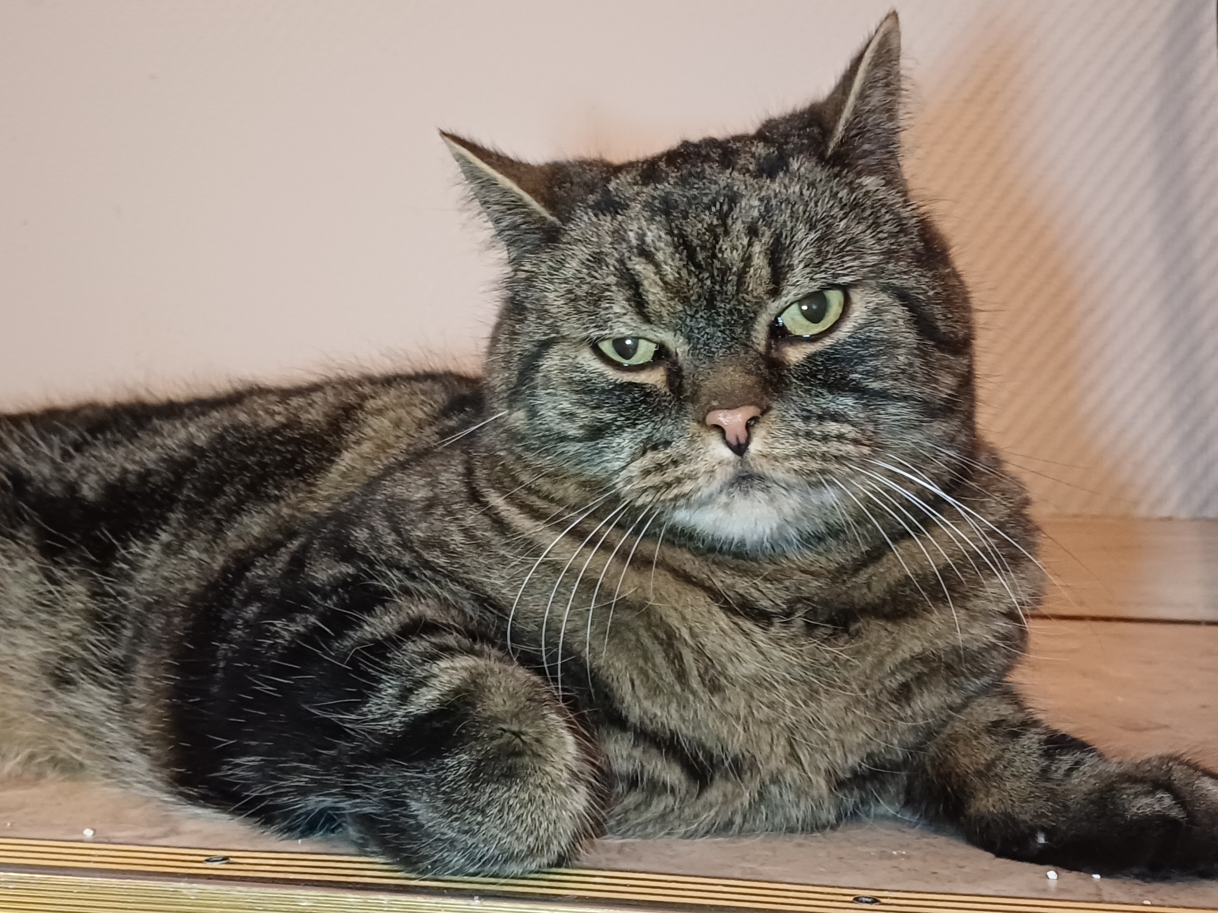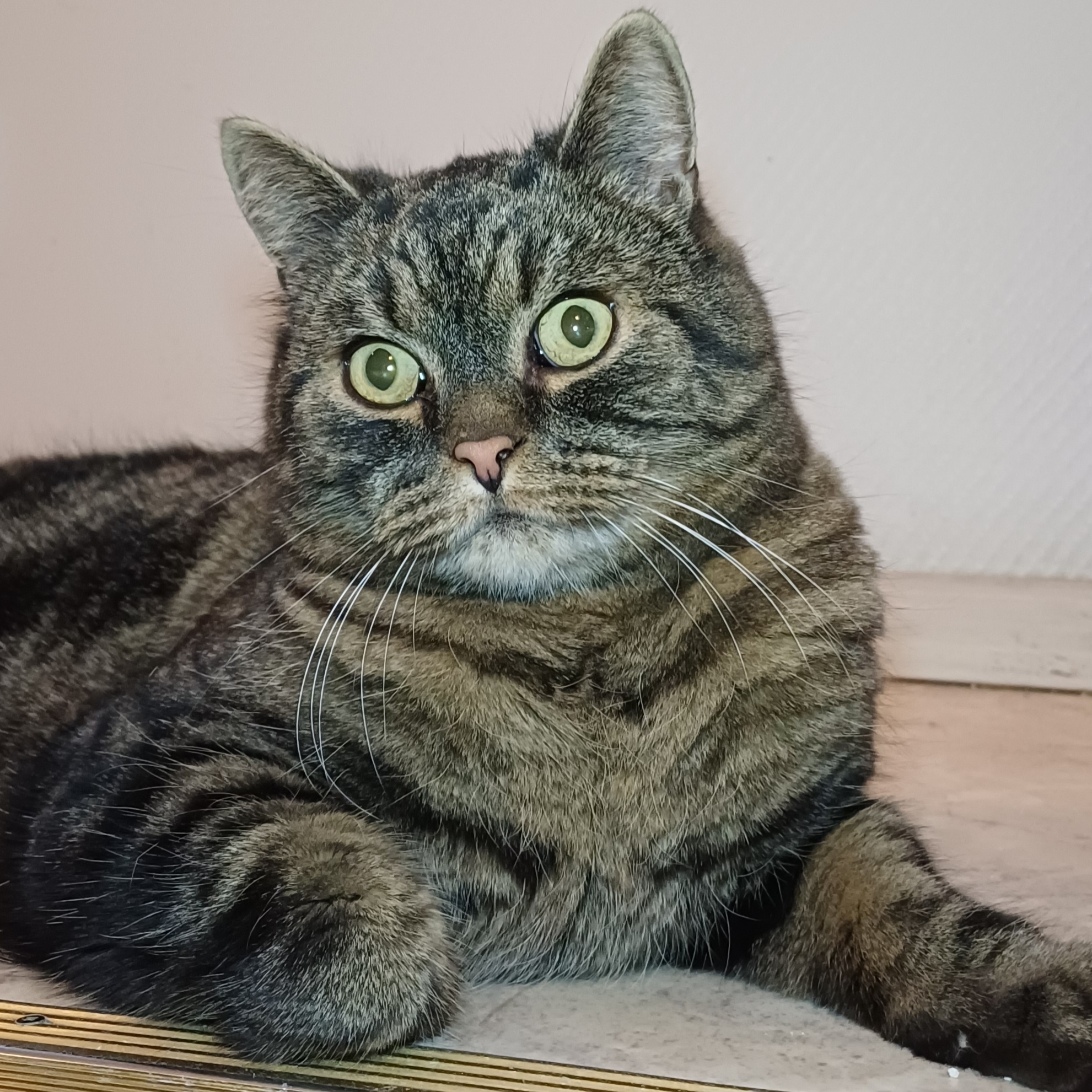Detta charmtroll söker nu ett nytt kärleksfullt hem, han verkar vara en lugn och gosig katt. Han har alltid varit ensamkatt, men har vana av att vara med hundar. Vill inte bo med småbarn, men kanske att en hundkompis eller en honkatt kan fungera. Misse vill även ha tillgång till utevistelse.