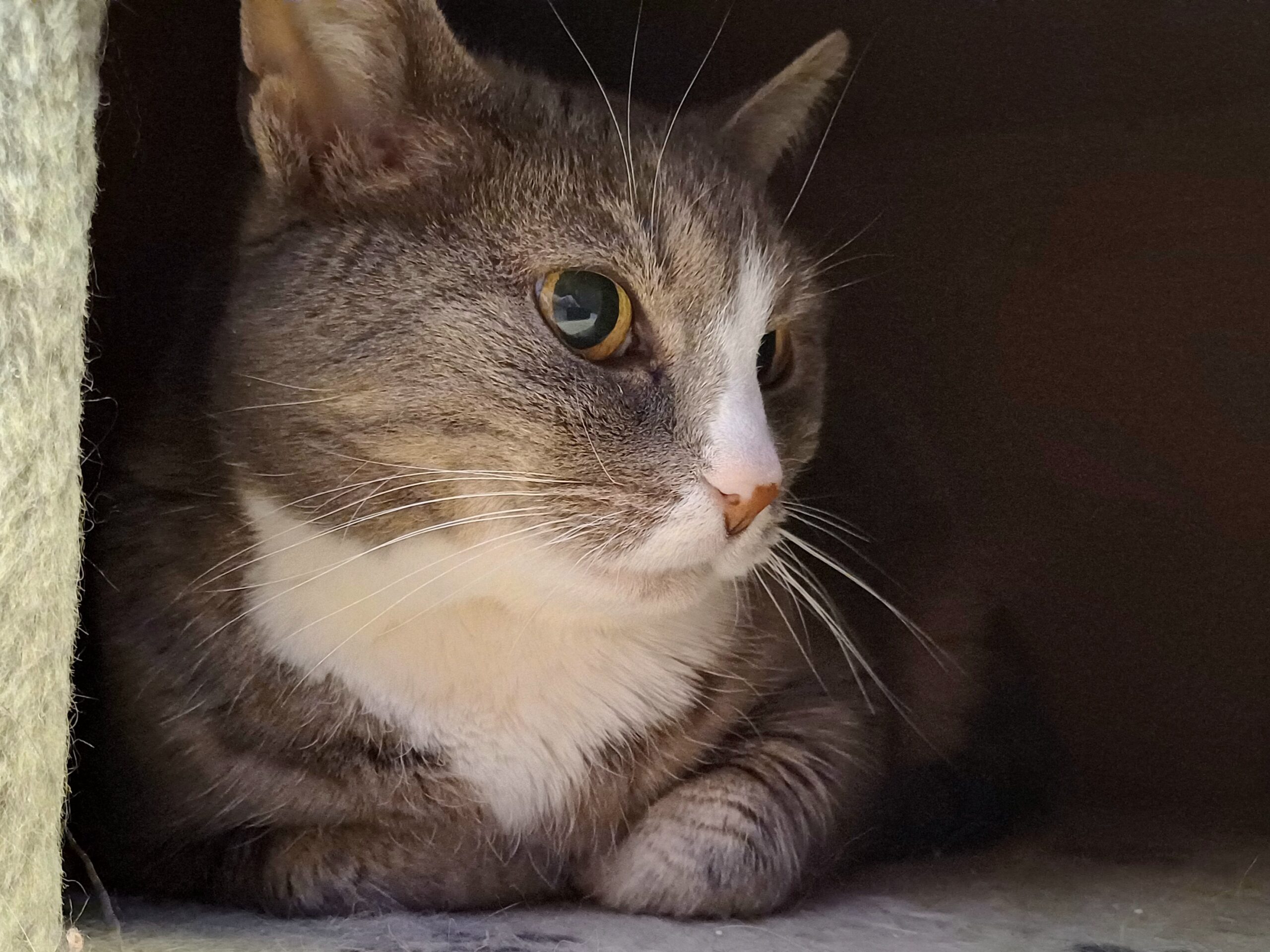 Mollie är en riktigt snäll och gosig tjej som tyvärr är en av katterna som tappade sitt hem pga brand, så nu söker hon ett nytt kärleksfullt hem där hon kan få den uppmärksamhet som hpn förtjänar.