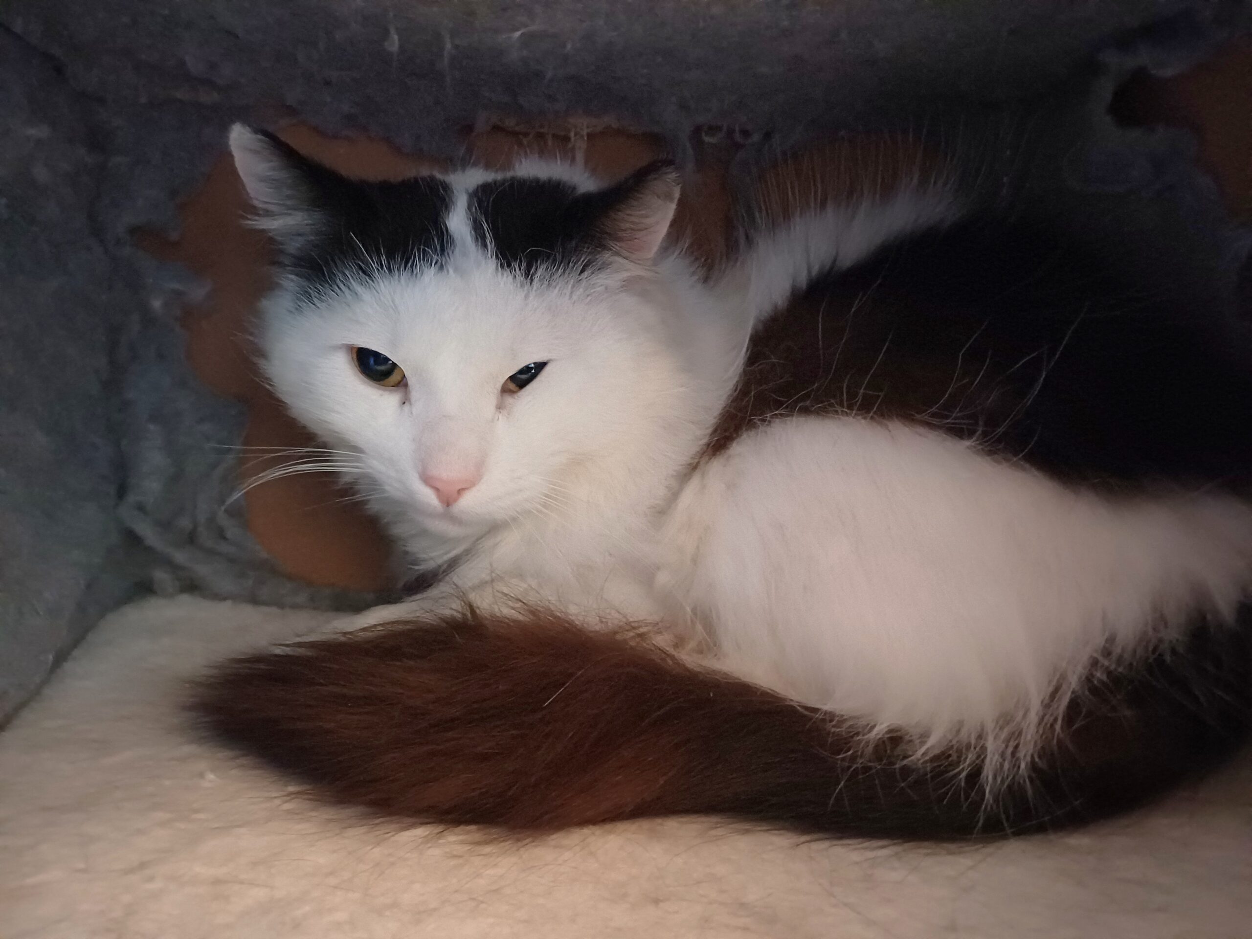 Örjan kom till oss i dåligt skick men har nu läkt och mår bra igen, så nu är han redo för sitt föralltidhem. Han är lite blyg av sig men är både snäll och lätthanterlig, men känner sig tryggast i sina kojor. Stoppar man in en hand och börjar klappa så tar det inte lång tid innan han kurrar lite och stångar med huvudet för lite mys.