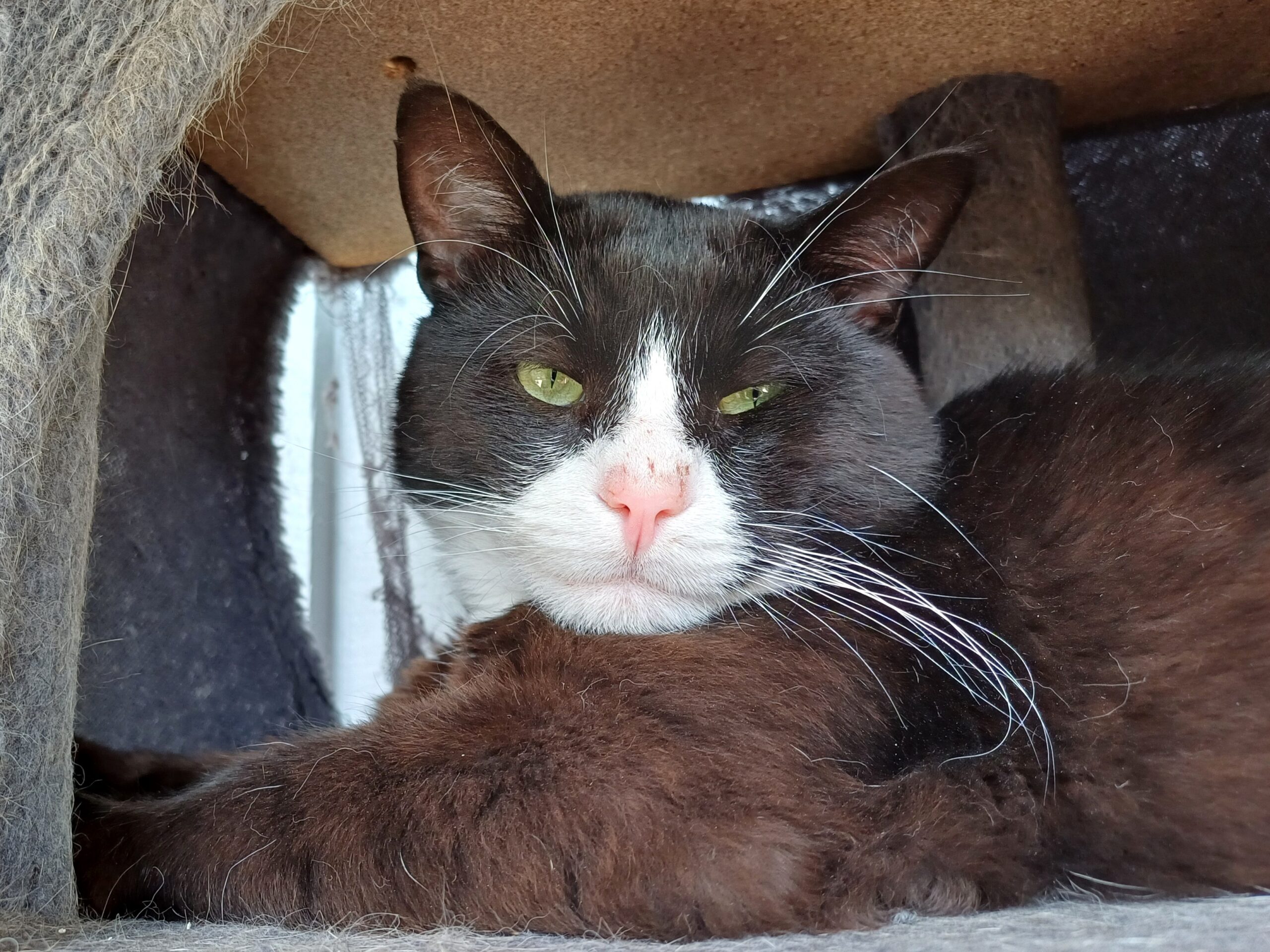 Ploppy söker sitt föralltidhem, han är snäll och har gått från en lite reserverad och blyg katt till en väldigt nyfiken kisse som gärna vill hålla koll på vad vi människor hittar på. Vi tror att Ploppy kommer bli ett väldigt fint sällskap när han känner sig trygg och kan blomma ut ännu mer.