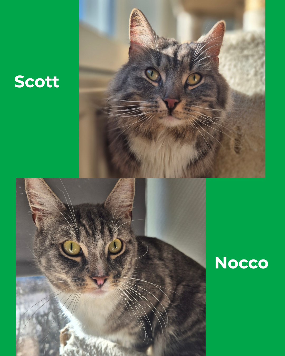 Bröderna Scott och Nocco är två härliga och sociala katter som kom till oss som en omplacering.