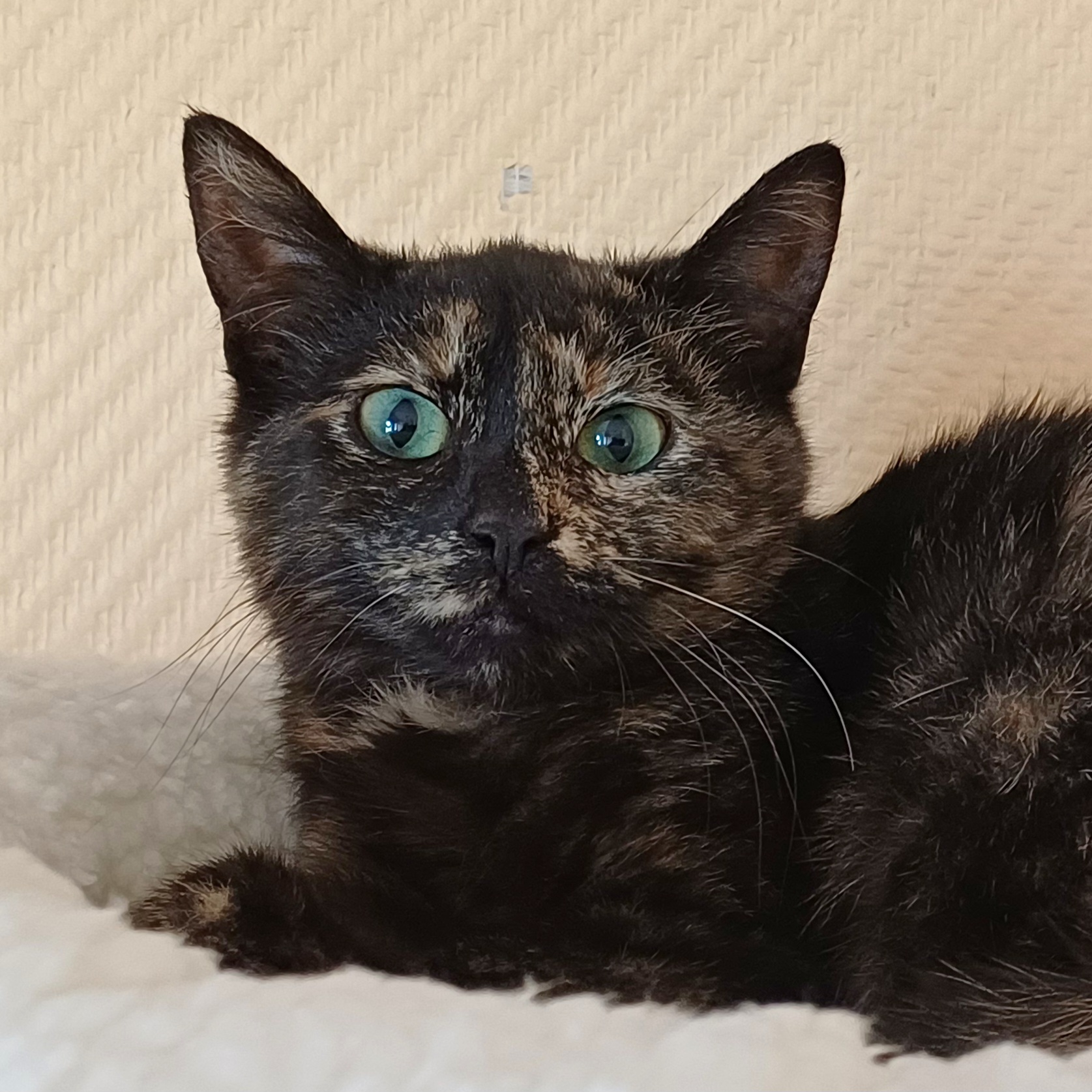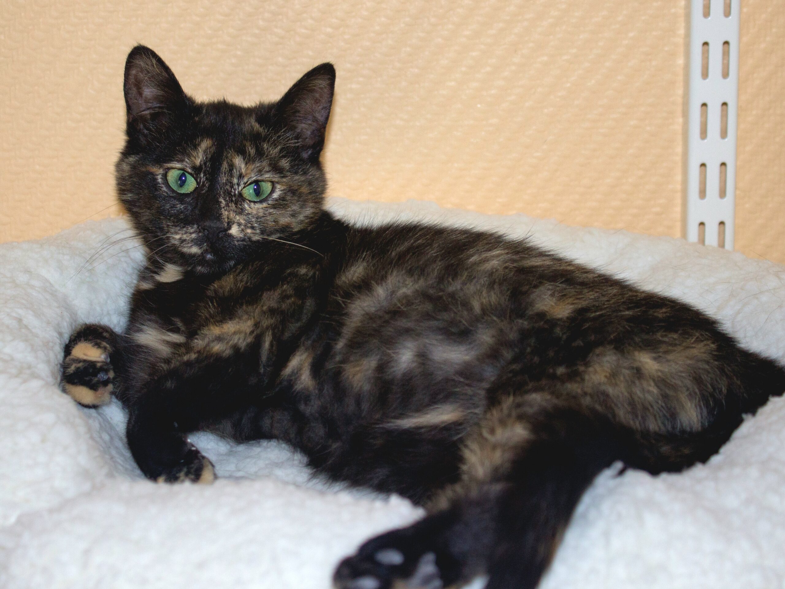 Den här lilla sötnosen söker sitt trygga hem. Hon är lite skygg och kan fräsa, men när hon känner sig trygg kan hon tillome äta ur handen. Steffi vill ha en lite lugnare kattkompis som kan hjälpa henne att blomma ut i sin egen takt.